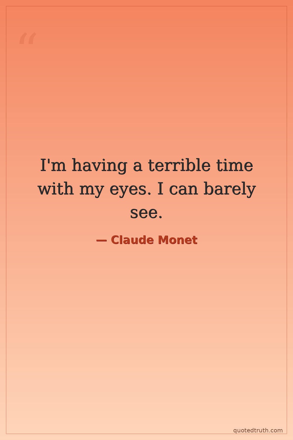Humorous"Ah, gentlemen, I do not receive guests when I'm working, indeed. When I work, if I am interrupted, I lose all inspiration; I am lost. You understand, I'm chasing a band of colour."