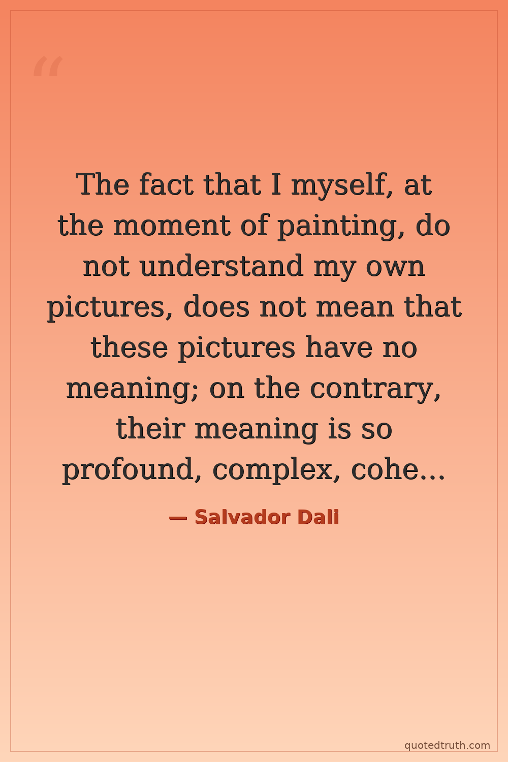 The fact that I myself, at the moment of painting, do not understand my own pictures, does not mean that these pictures have no meaning; on the contrary, their meaning is so profound, complex, coherent, and involuntary that it escapes the most simple analysis of logical intuition.