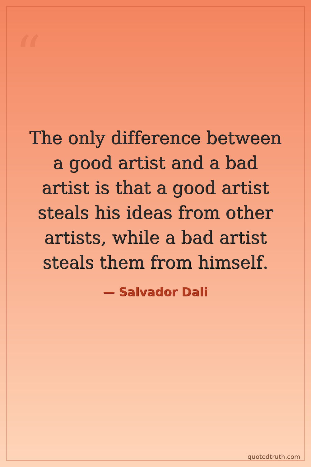 The only difference between a good artist and a bad artist is that a good artist steals his ideas from other artists, while a bad artist steals them from himself.