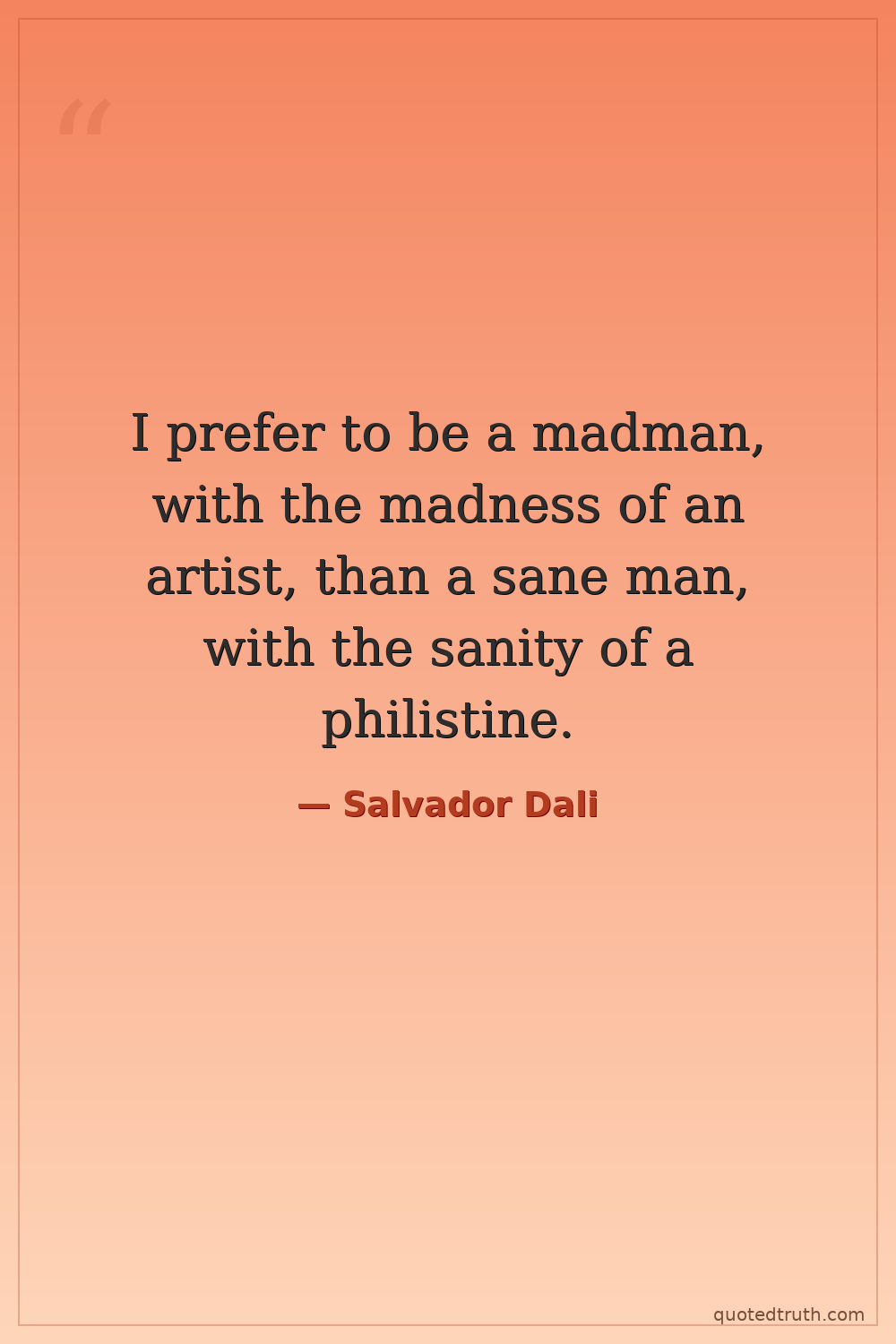 I prefer to be a madman, with the madness of an artist, than a sane man, with the sanity of a philistine.