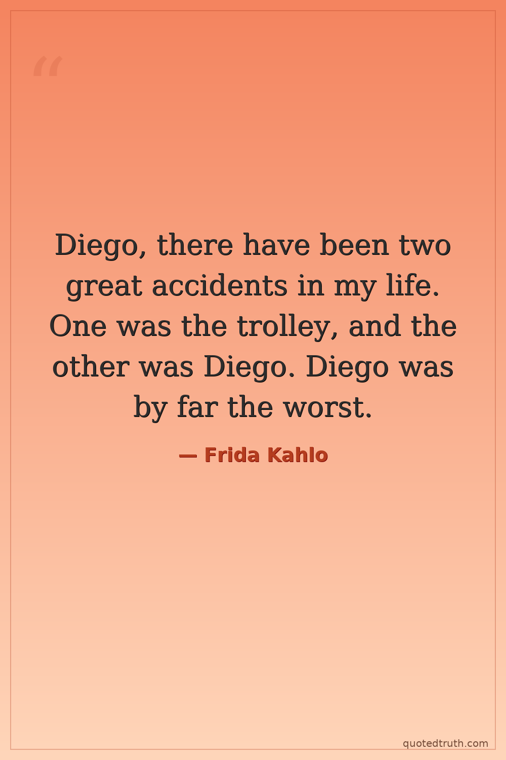 Diego, there have been two great accidents in my life. One was the trolley, and the other was Diego. Diego was by far the worst.