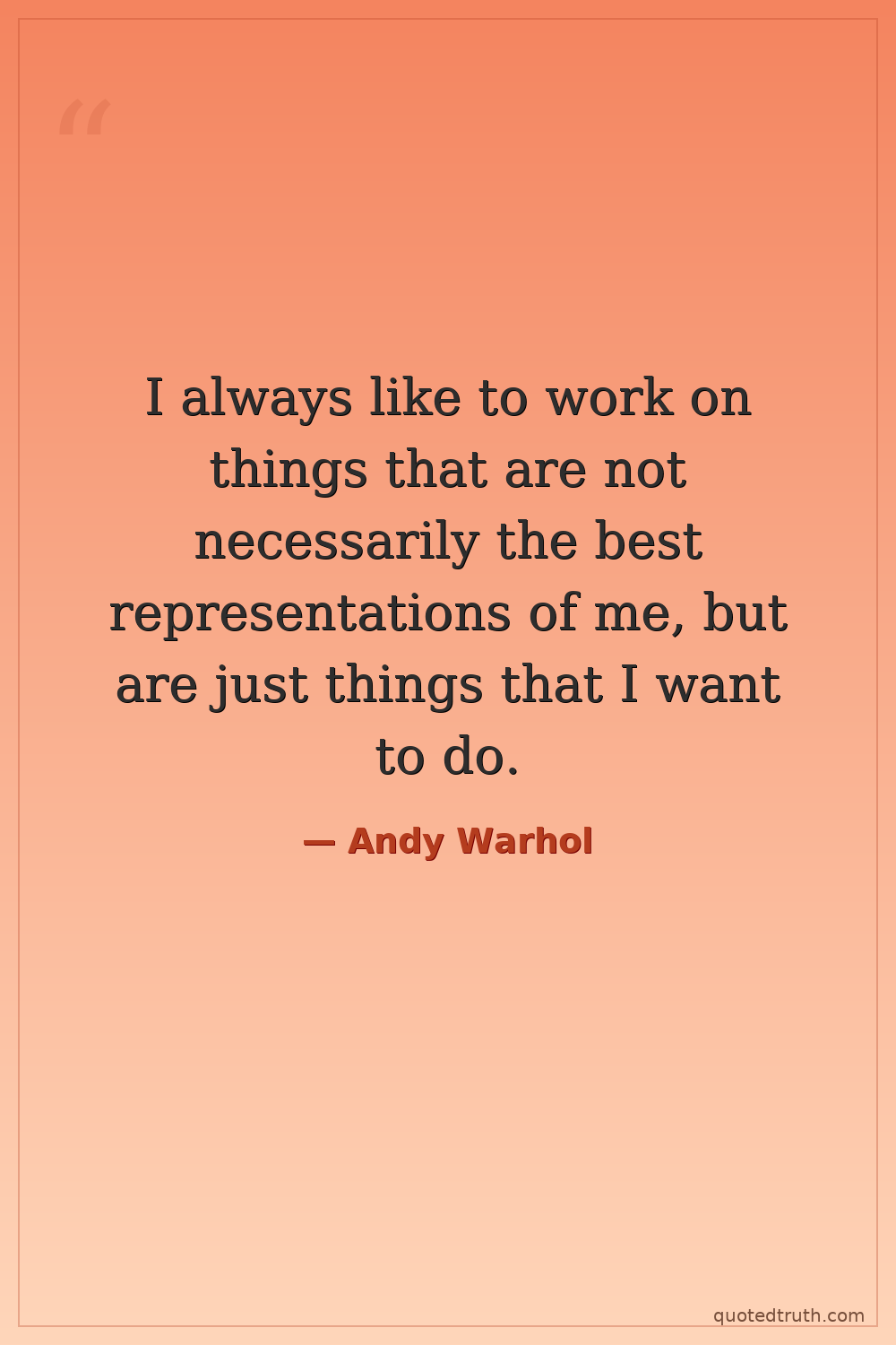 I always like to work on things that are not necessarily the best representations of me, but are just things that I want to do.