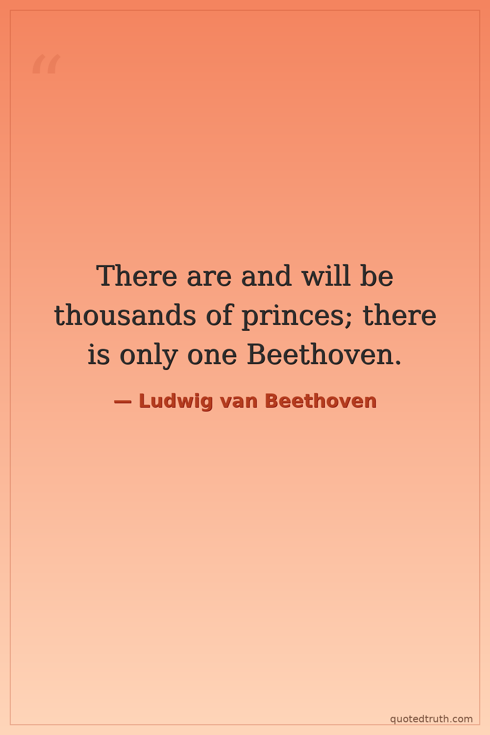 "What you are, you are by accident of birth; what I am, I am by myself. There are and will be a thousand princes; there is only one Beethoven."