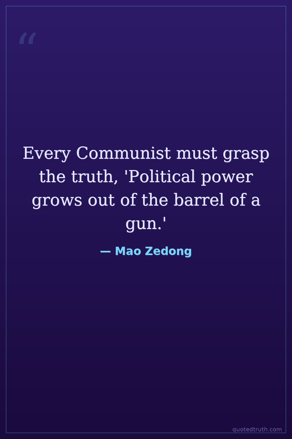 Every Communist must grasp the truth, 'Political power grows out of the barrel of a gun.'