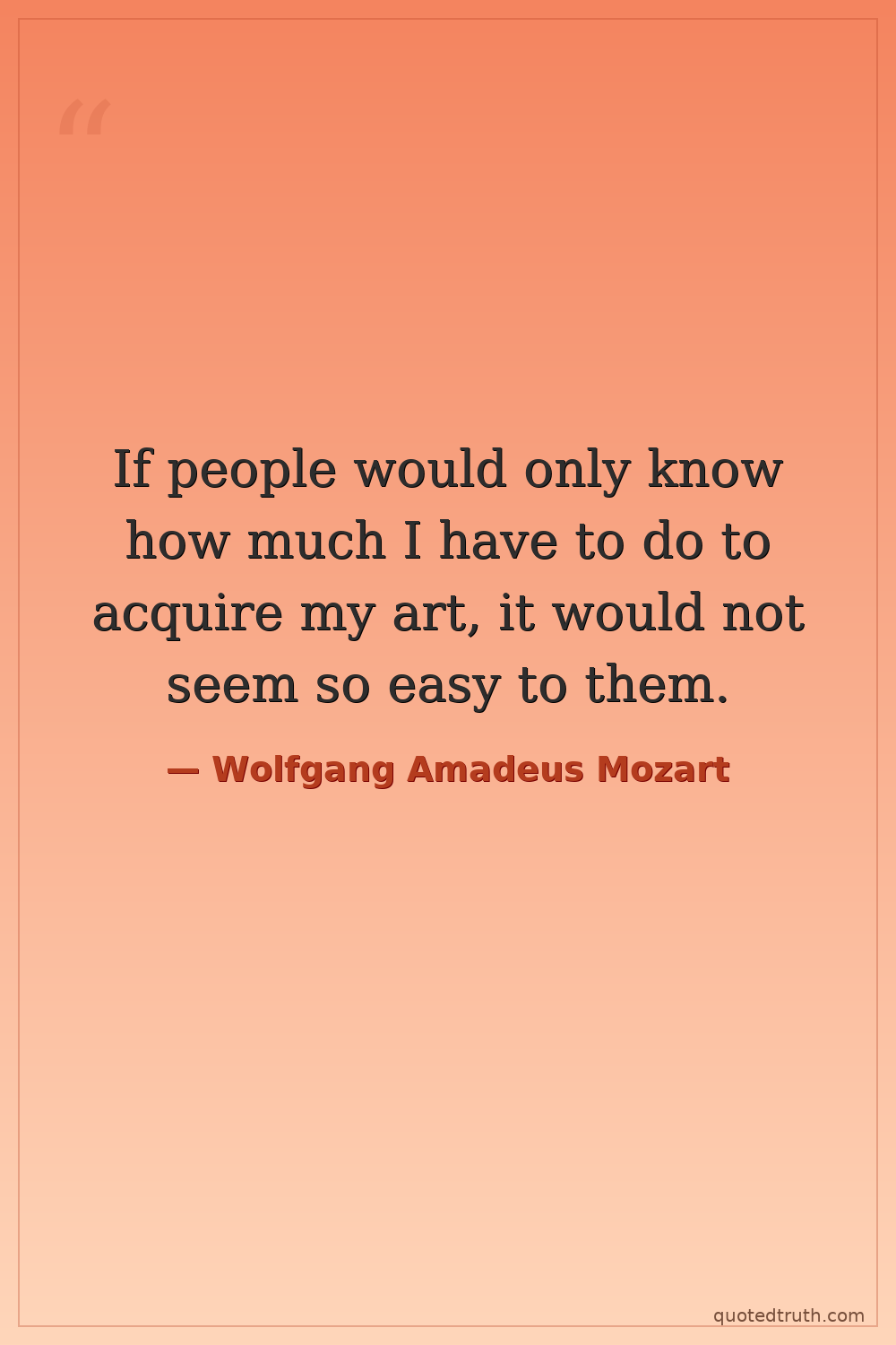 Wolfgang Amadeus Mozart — "If people would only know how much I have to do to acquire my art, it would not …"
