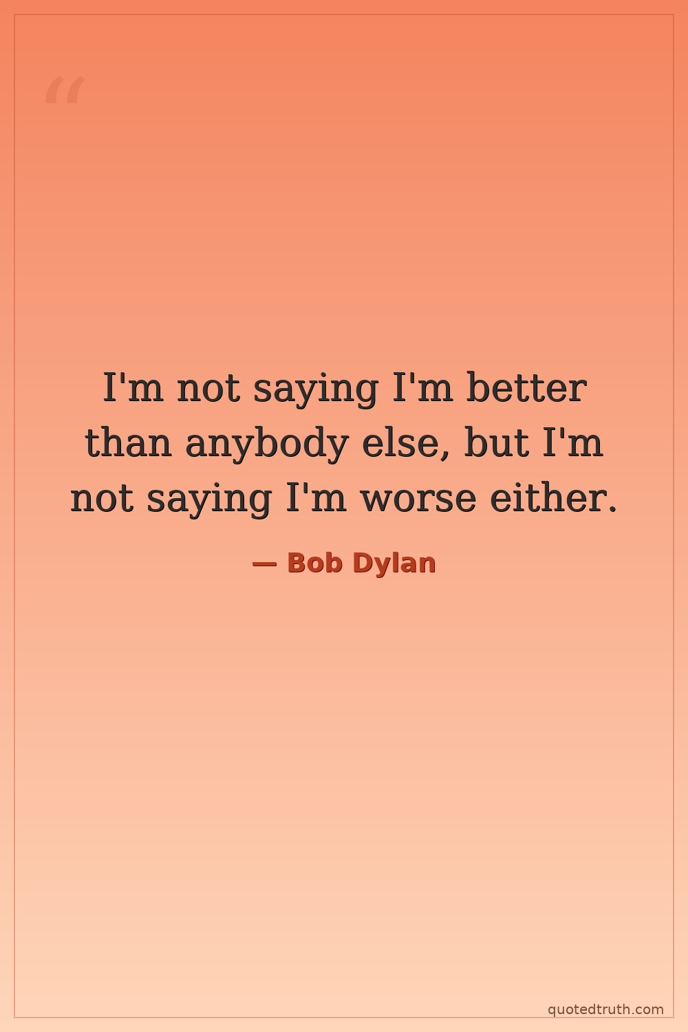 I'm not saying I'm better than anybody else, but I'm not saying I'm worse either.