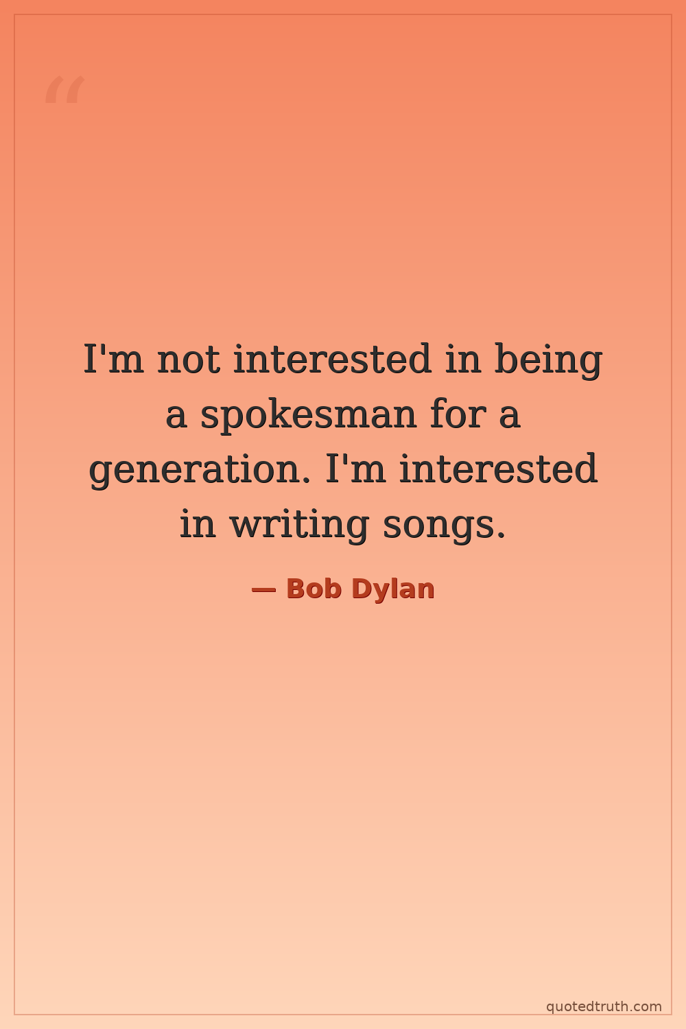 I'm not interested in being a spokesman for a generation. I'm interested in writing songs.
