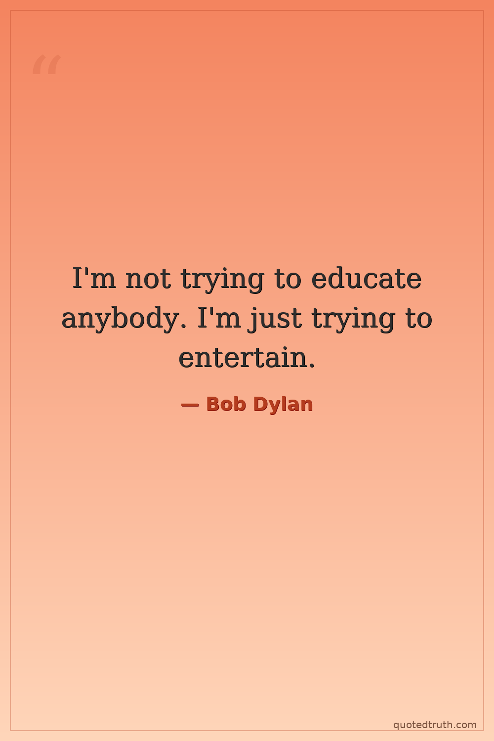 I'm not trying to educate anybody. I'm just trying to entertain.