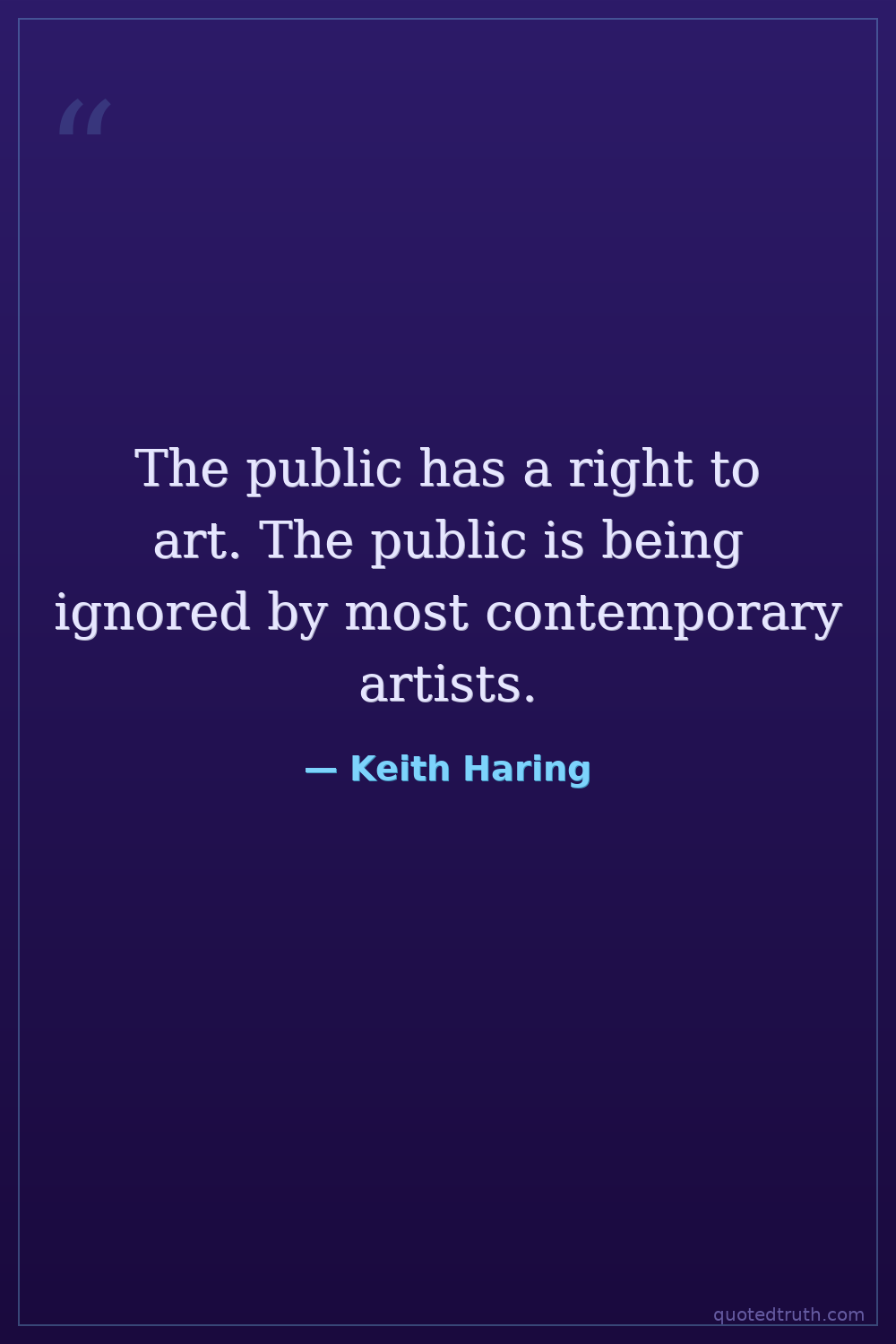 The public has a right to art. The public is being ignored by most contemporary artists.