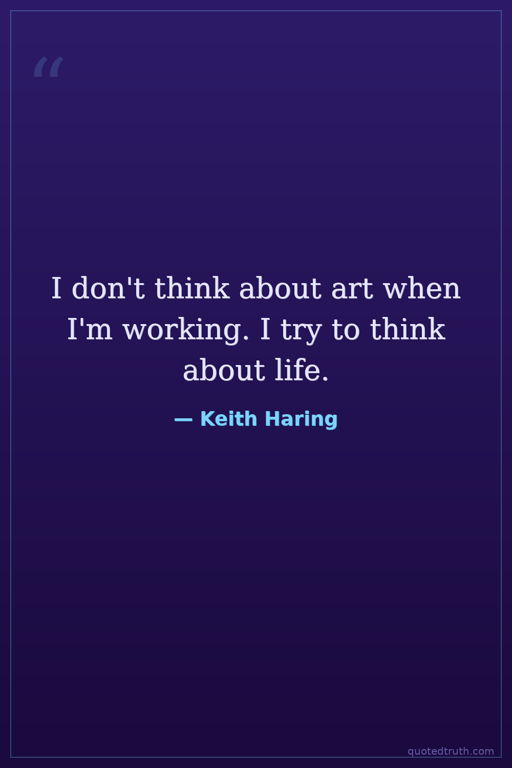 I don't think about art when I'm working. I try to think about life.