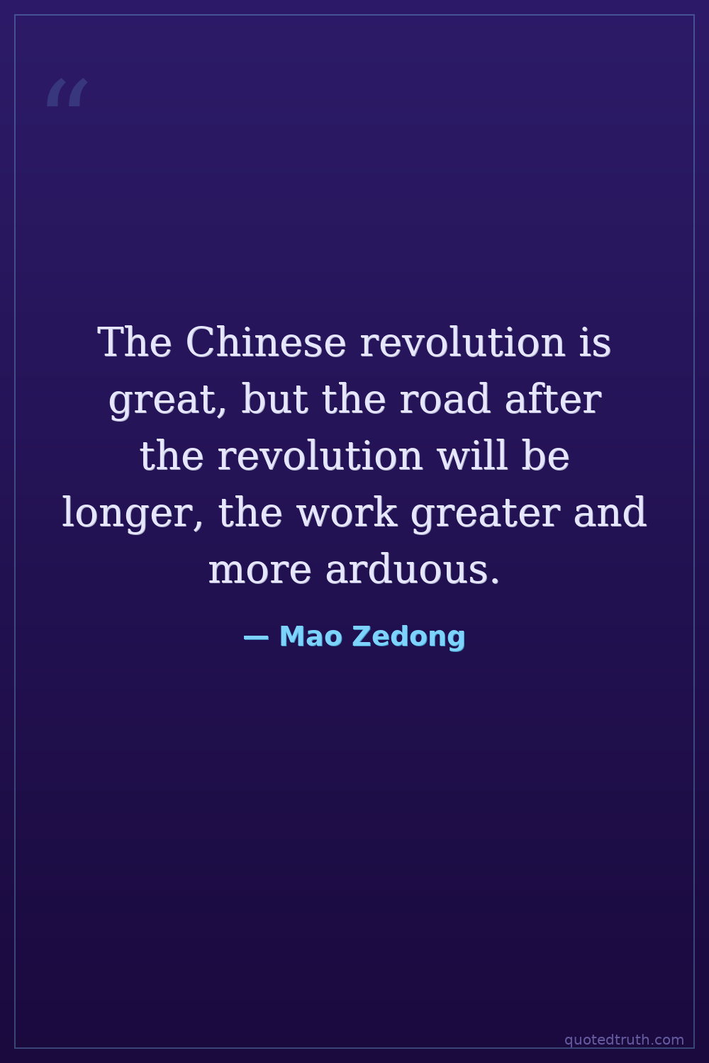 The Chinese revolution is great, but the road after the revolution will be longer, the work greater and more arduous.