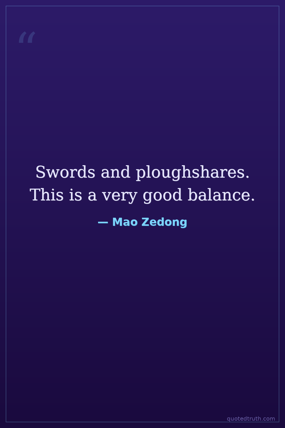 Swords and ploughshares. This is a very good balance.