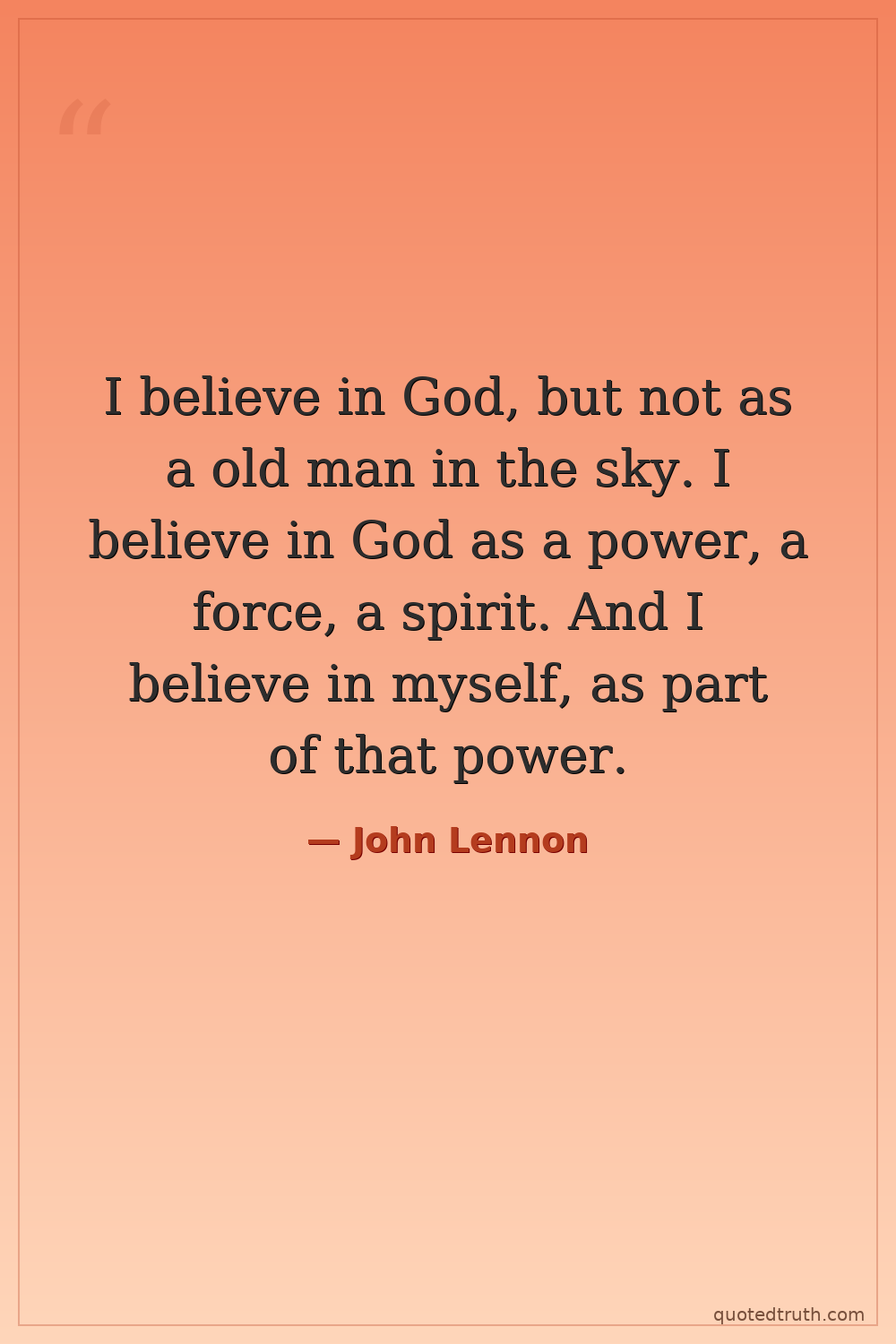 I believe in God, but not as a old man in the sky. I believe in God as a power, a force, a spirit. And I believe in myself, as part of that power.