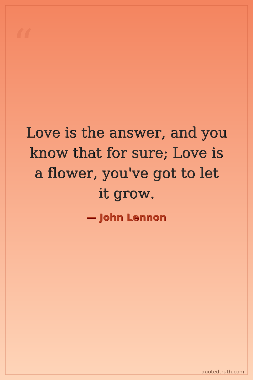 Love is the answer, and you know that for sure; Love is a flower, you've got to let it grow.