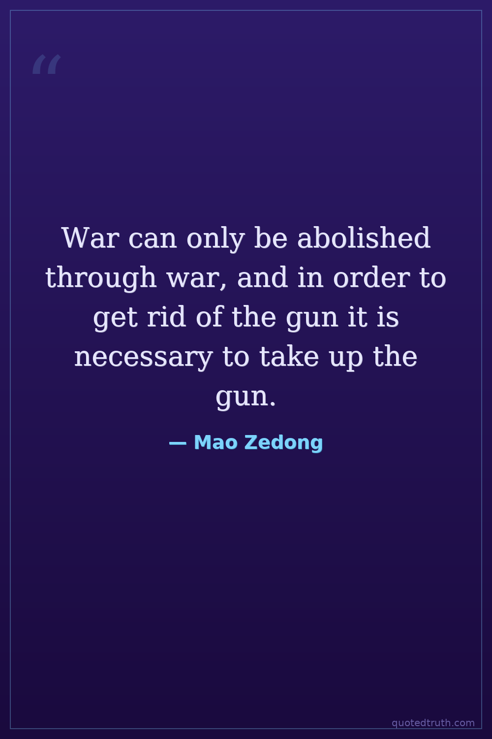 War can only be abolished through war, and in order to get rid of the gun it is necessary to take up the gun.
