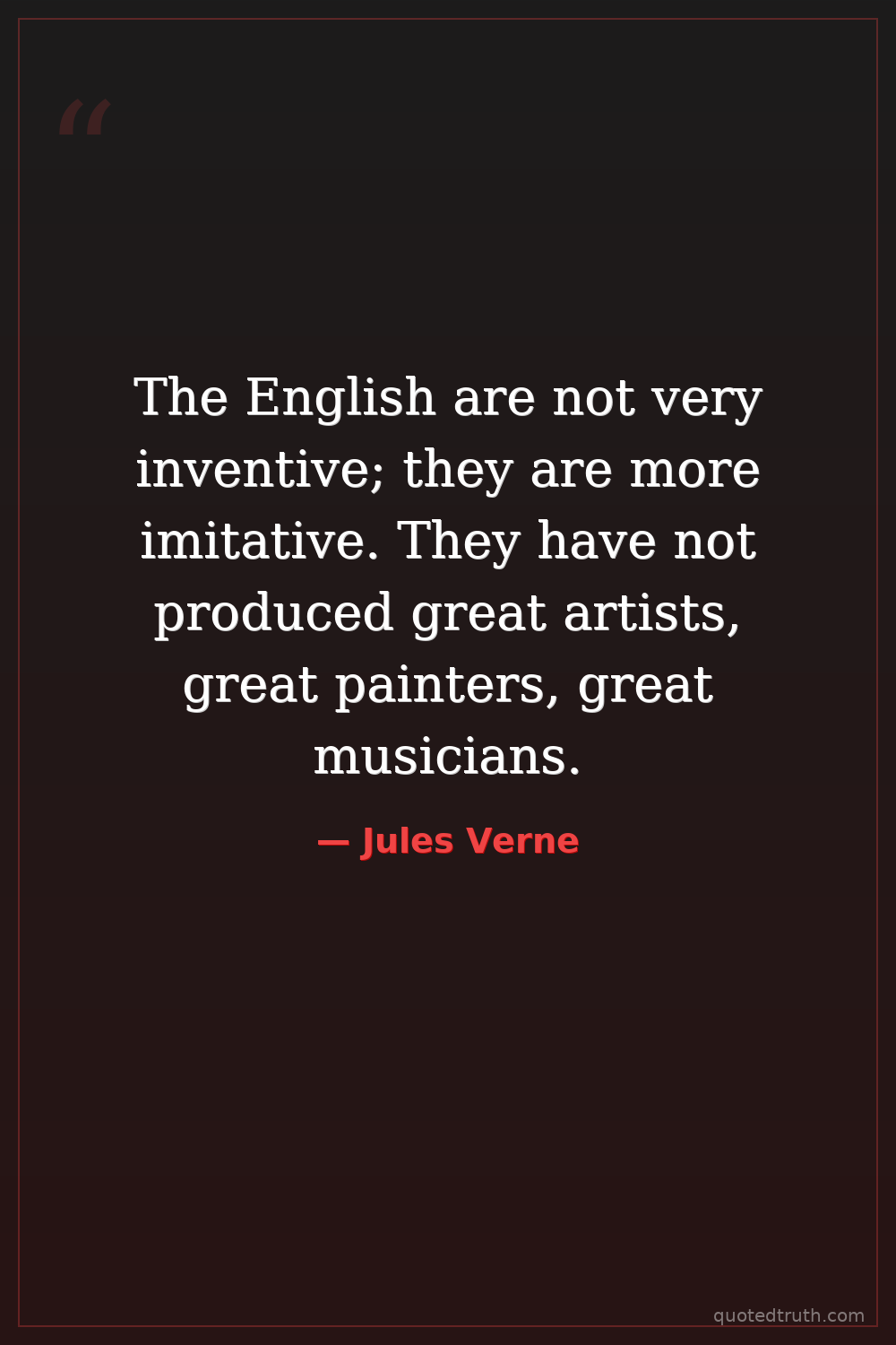 The English are not very inventive; they are more imitative. They have not produced great artists, great painters, great musicians.