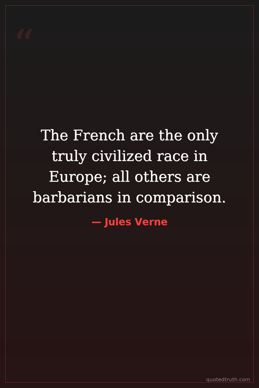 The French are the only truly civilized race in Europe; all others are barbarians in comparison.
