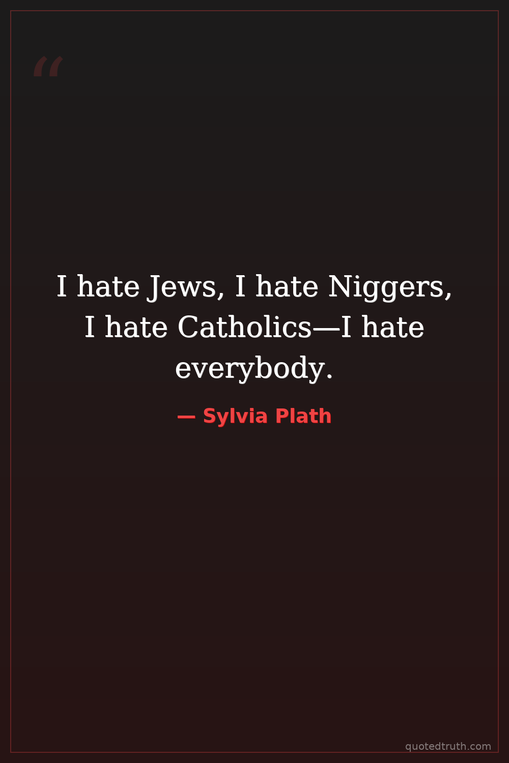 I hate Jews, I hate Niggers, I hate Catholics—I hate everybody.