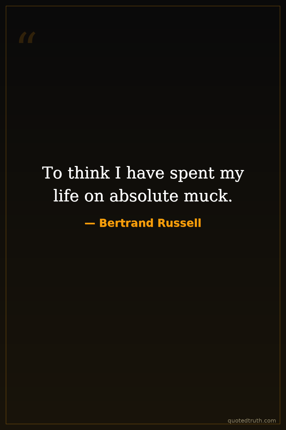 To think I have spent my life on absolute muck.