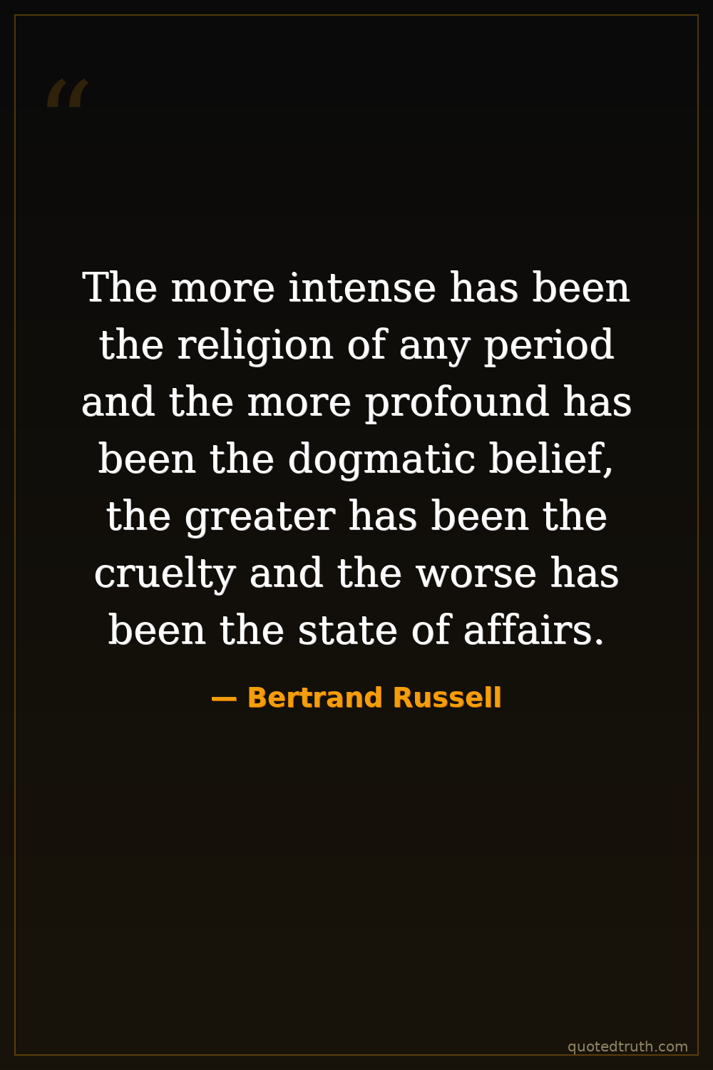 The more intense has been the religion of any period and the more profound has been the dogmatic belief, the greater has been the cruelty and the worse has been the state of affairs.
