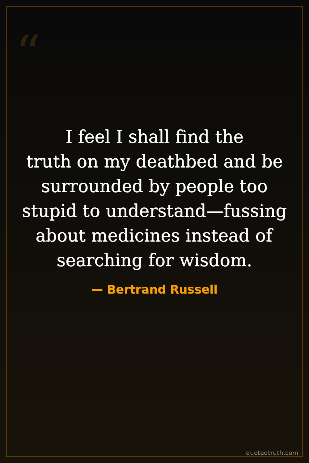 I feel I shall find the truth on my deathbed and be surrounded by people too stupid to understand—fussing about medicines instead of searching for wisdom.