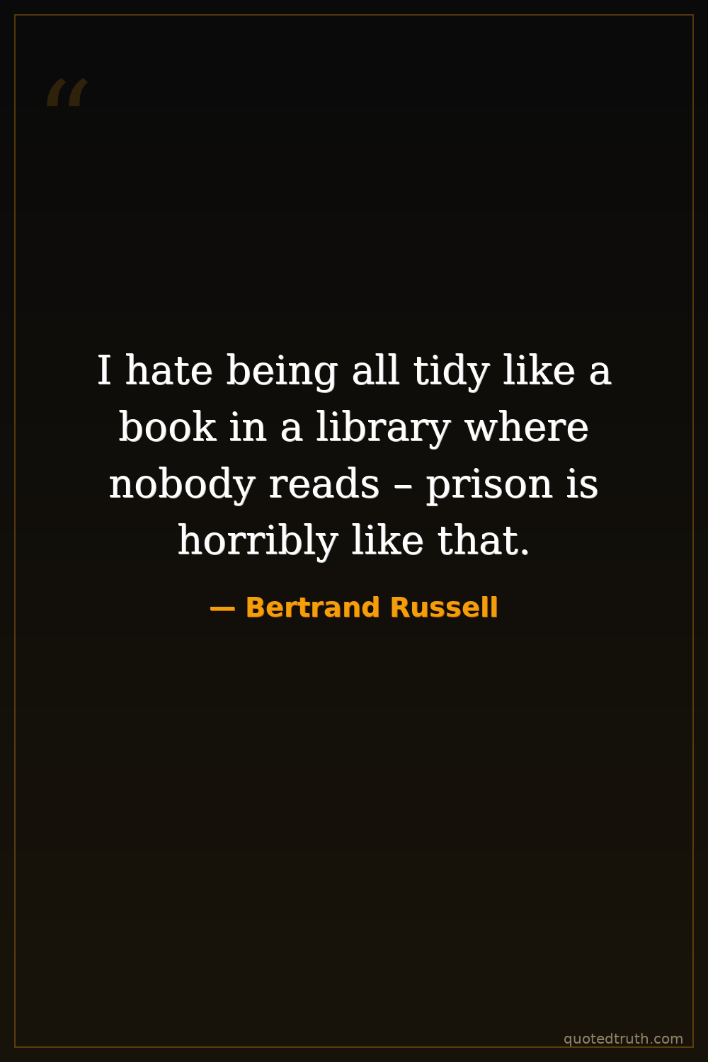 I hate being all tidy like a book in a library where nobody reads – prison is horribly like that.