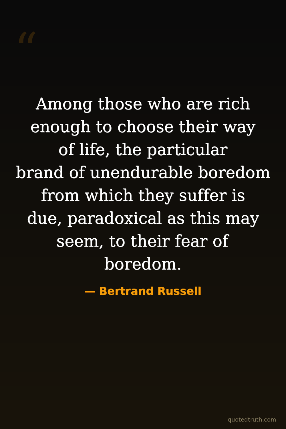 Among those who are rich enough to choose their way of life, the particular brand of unendurable boredom from which they suffer is due, paradoxical as this may seem, to their fear of boredom.