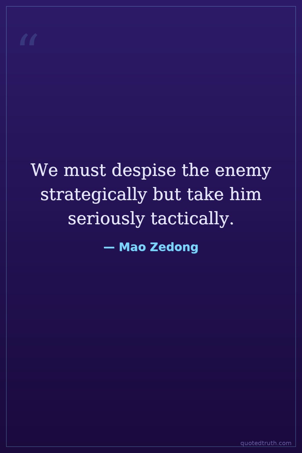 We must despise the enemy strategically but take him seriously tactically.