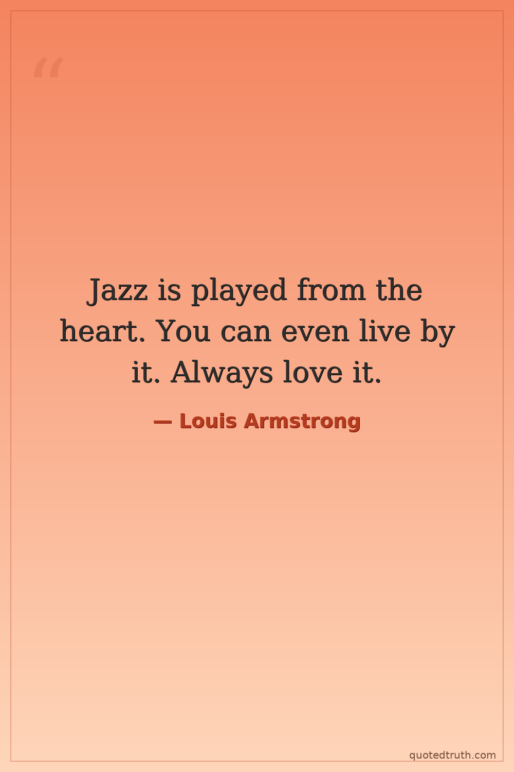 Jazz is played from the heart. You can even live by it. Always love it.
