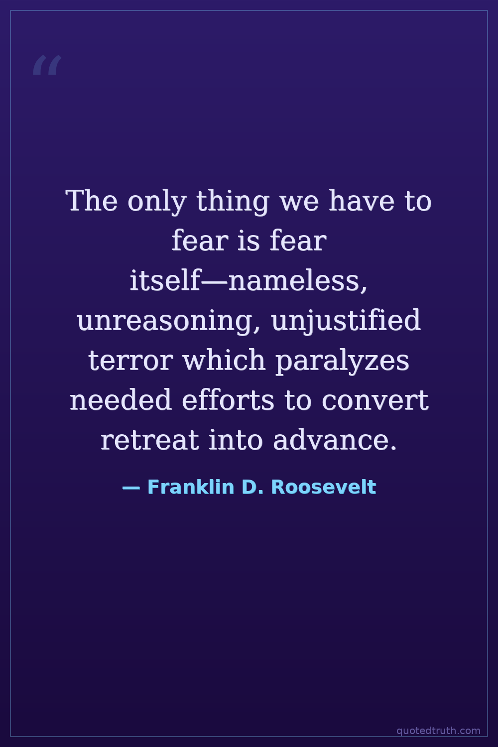 The only thing we have to fear is fear itself—nameless, unreasoning, unjustified terror which paralyzes needed efforts to convert retreat into advance.