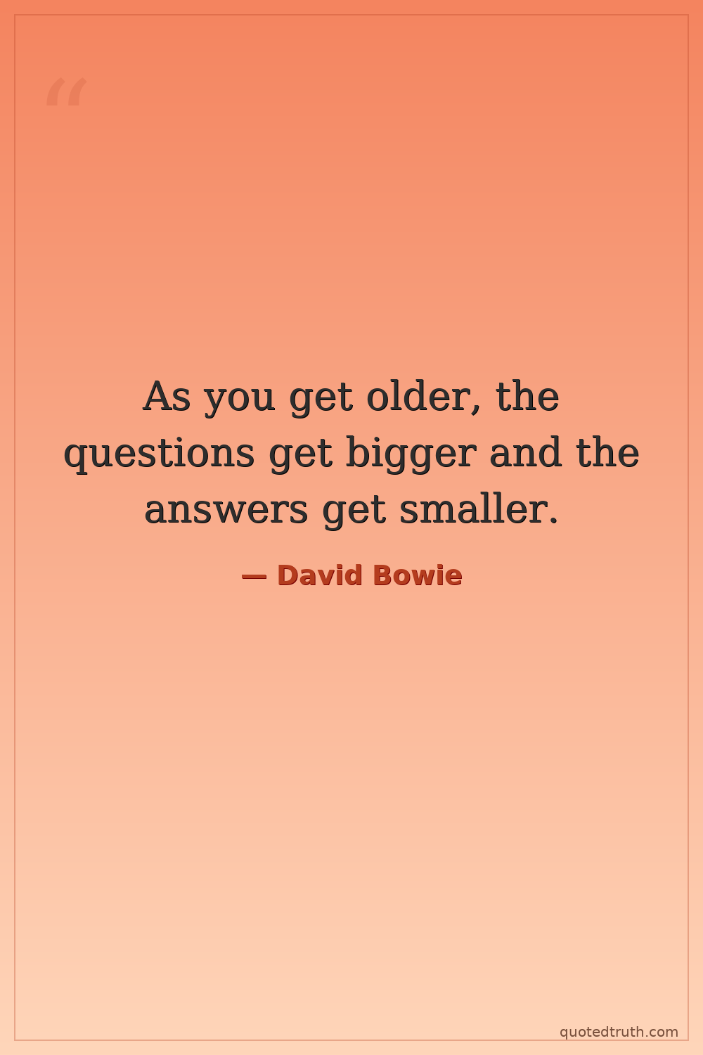 As you get older, the questions get bigger and the answers get smaller.