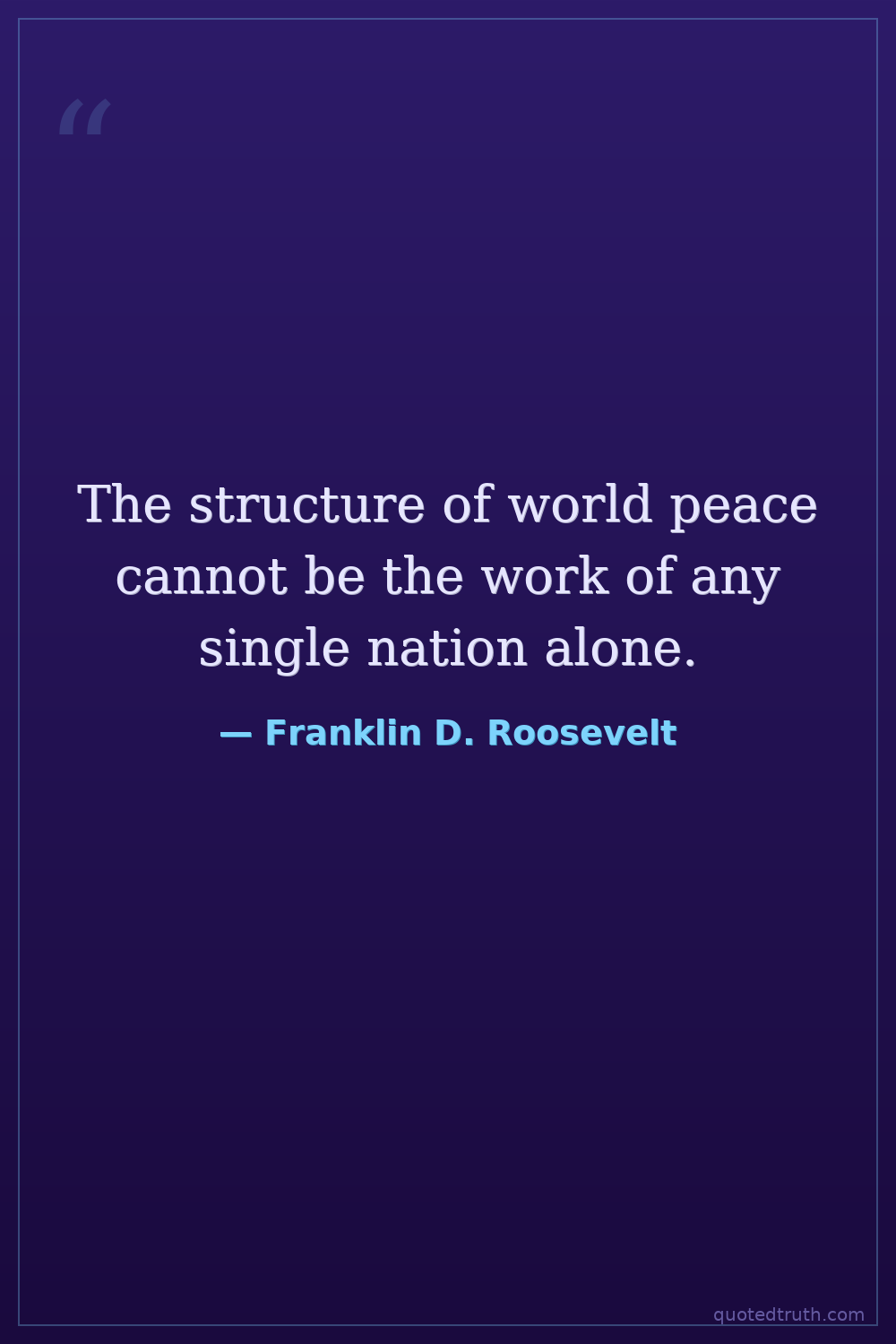 The structure of world peace cannot be the work of any single nation alone.
