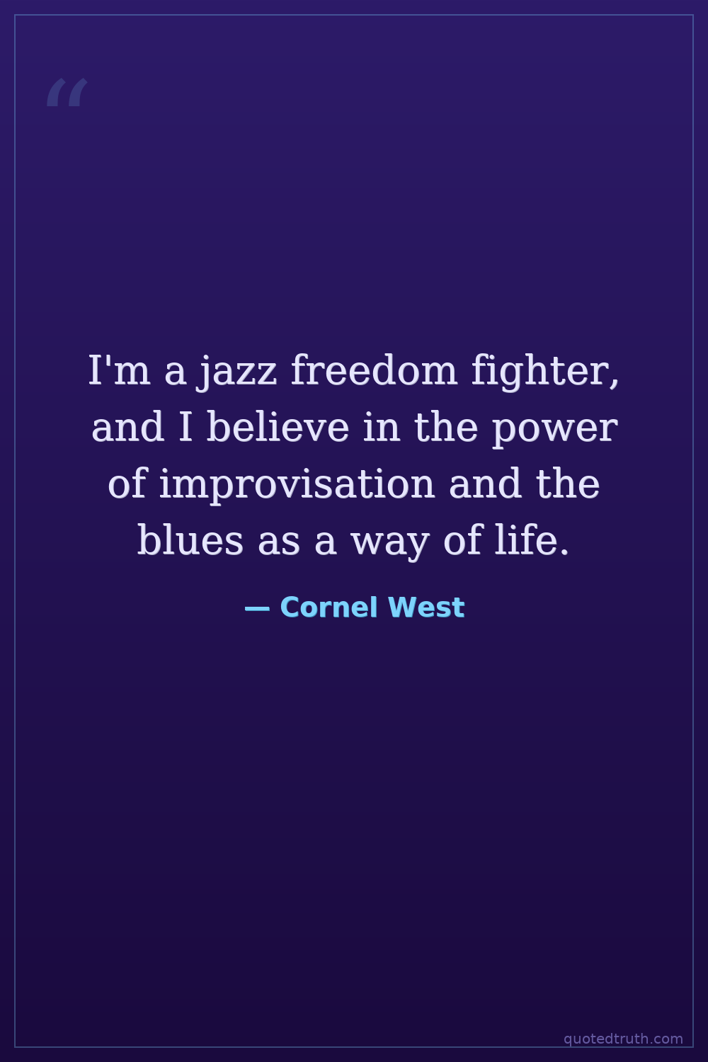 I'm a jazz freedom fighter, and I believe in the power of improvisation and the blues as a way of life.