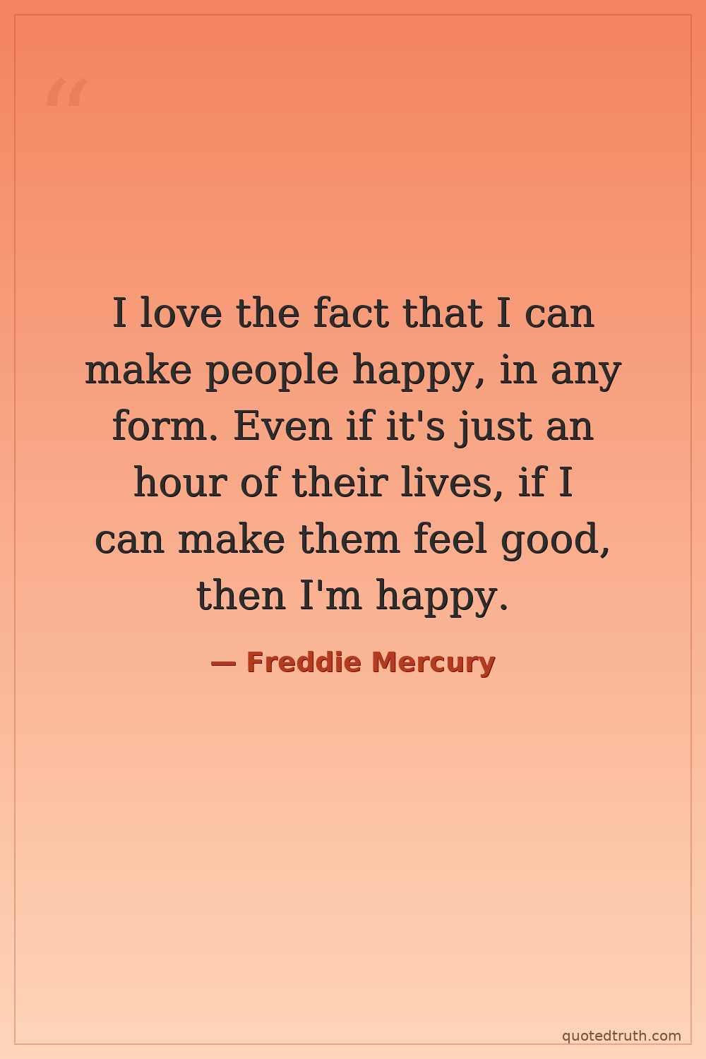I love the fact that I can make people happy, in any form. Even if it's just an hour of their lives, if I can make them feel good, then I'm happy.