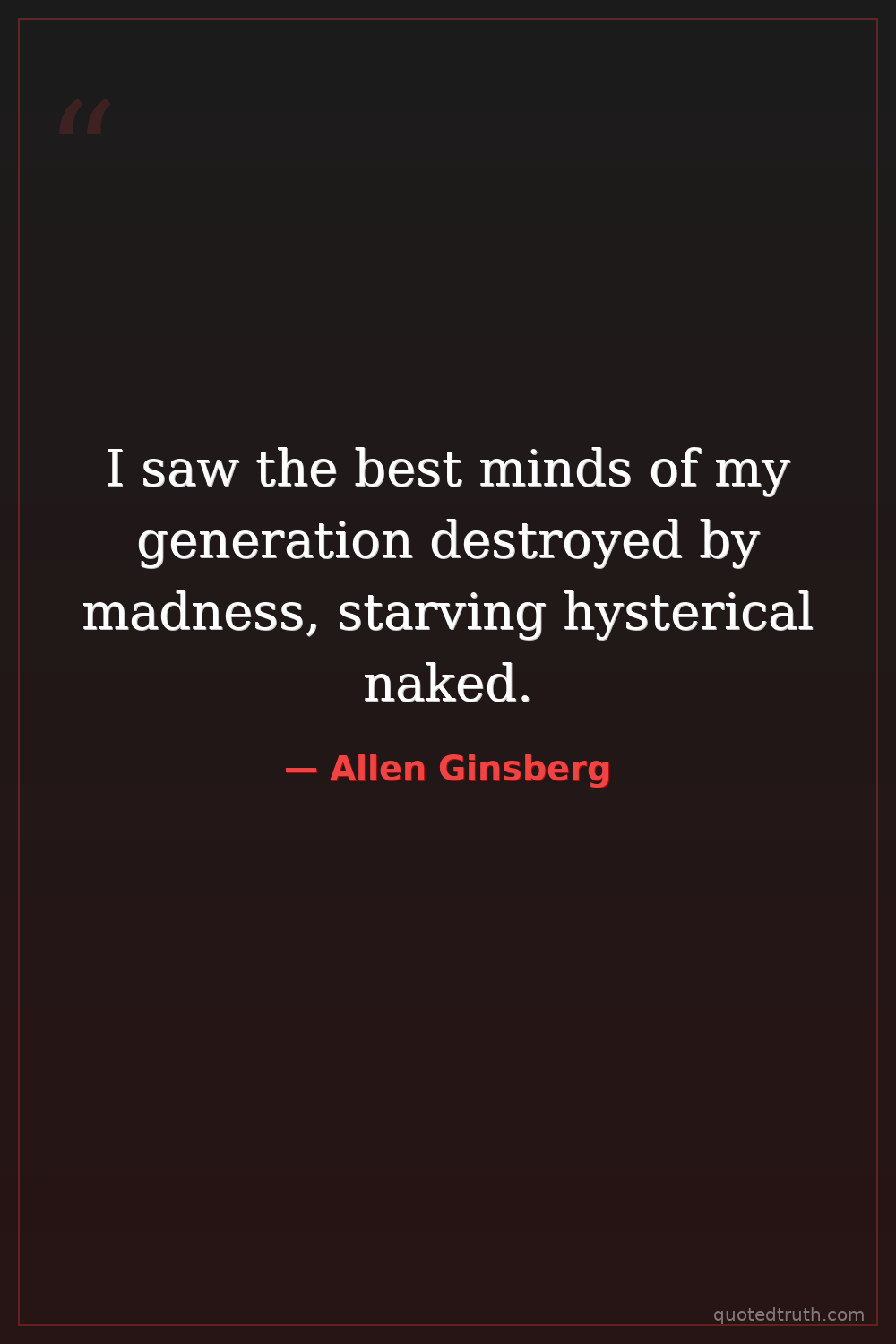 I saw the best minds of my generation destroyed by madness, starving hysterical naked.
