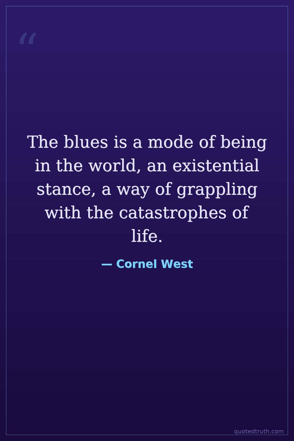 The blues is a mode of being in the world, an existential stance, a way of grappling with the catastrophes of life.