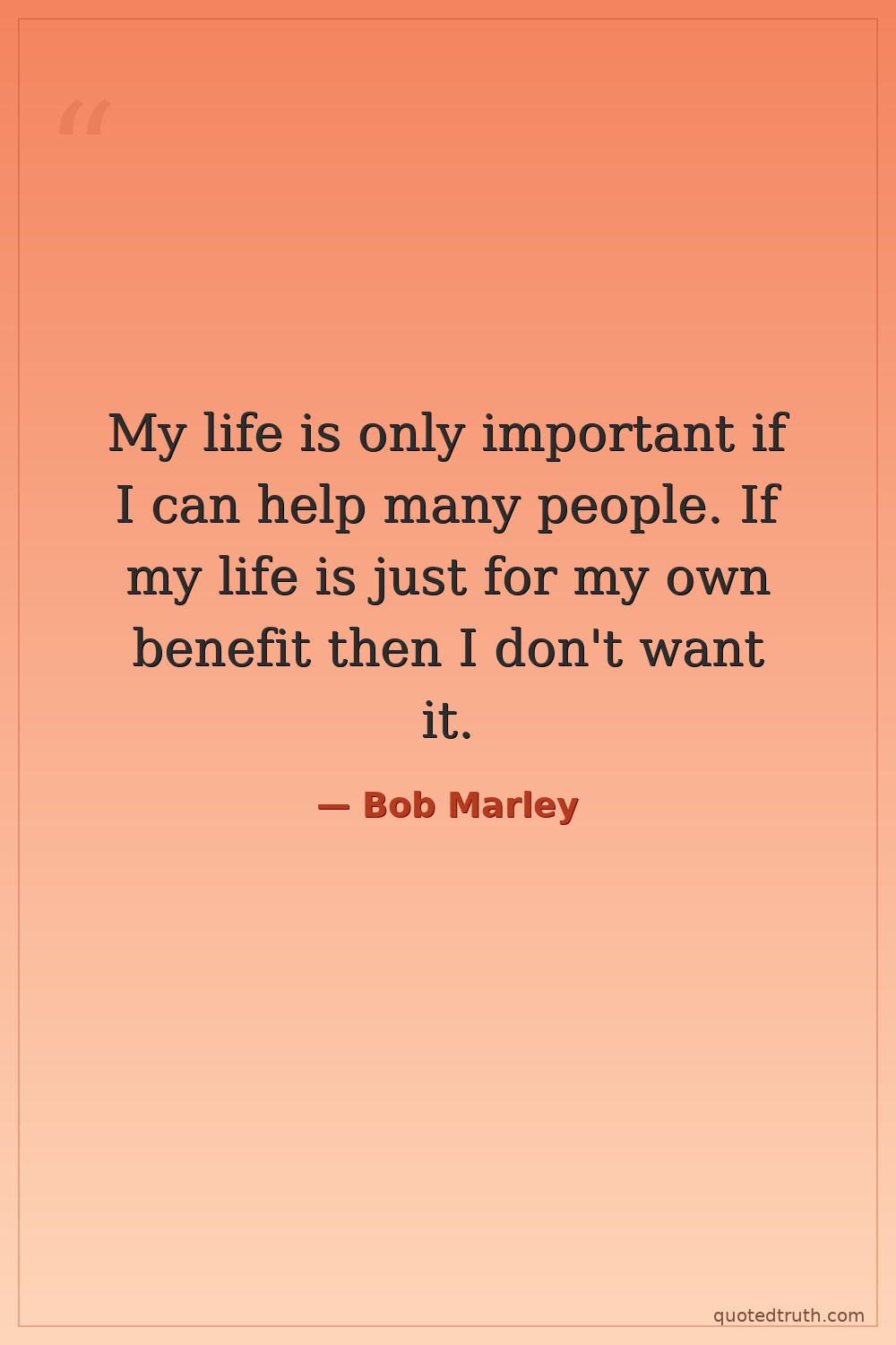 My life is only important if I can help many people. If my life is just for my own benefit then I don't want it.