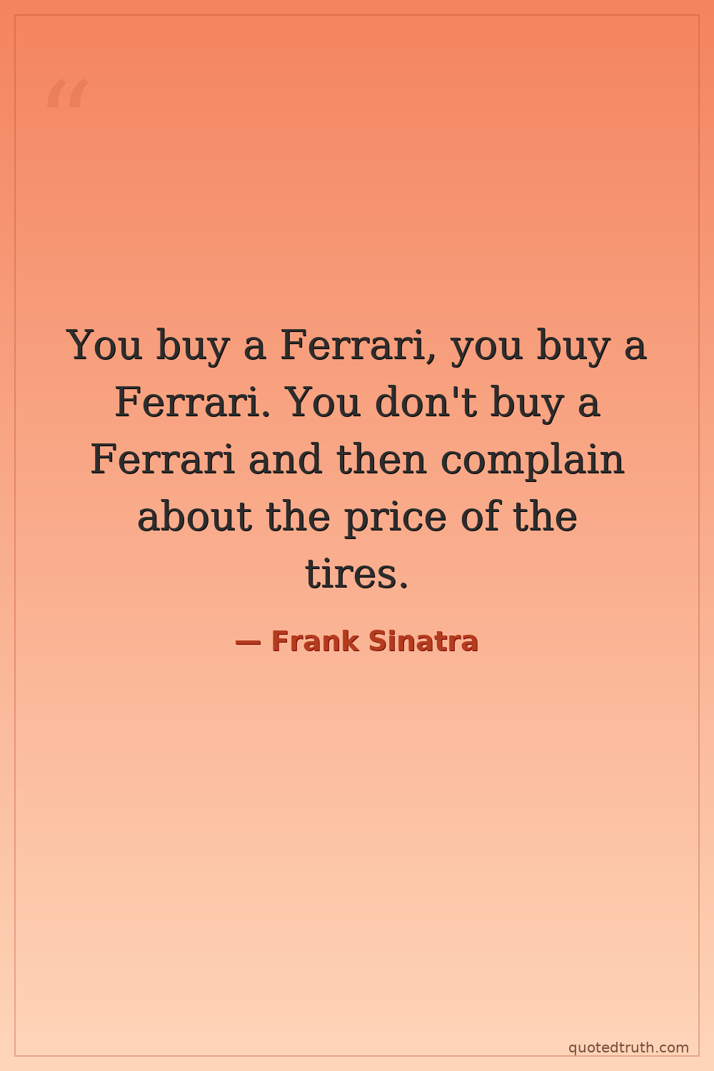 You buy a Ferrari, you buy a Ferrari. You don't buy a Ferrari and then complain about the price of the tires.