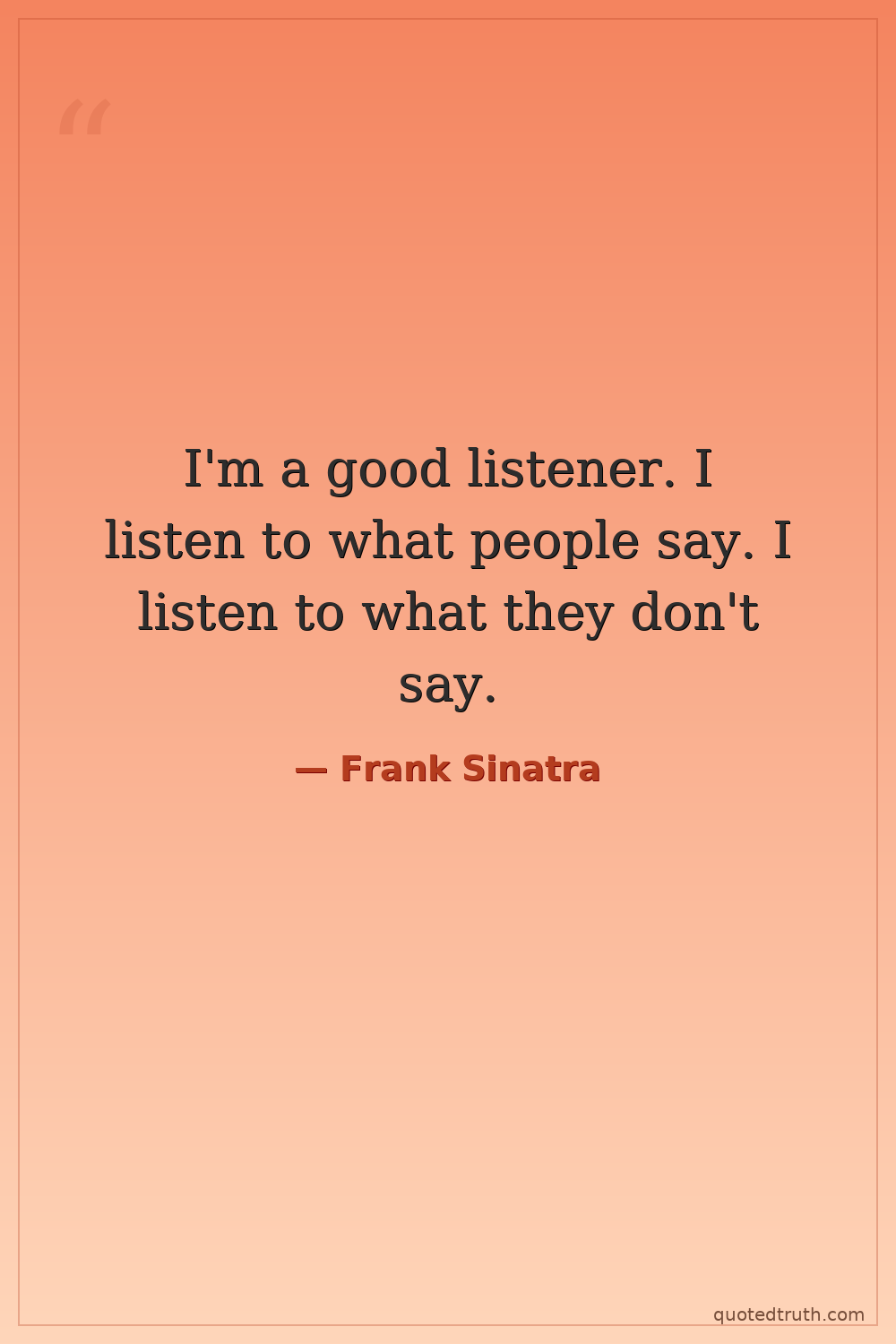 I'm a good listener. I listen to what people say. I listen to what they don't say.
