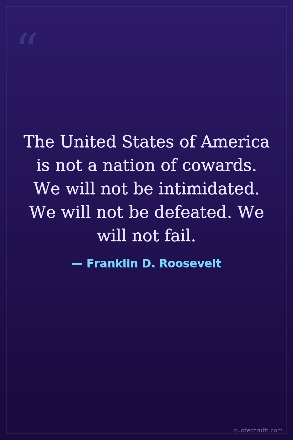 The United States of America is not a nation of cowards. We will not be intimidated. We will not be defeated. We will not fail.