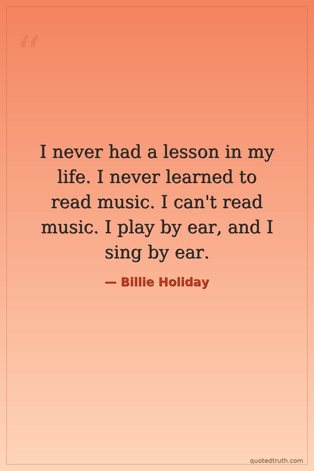 I never had a lesson in my life. I never learned to read music. I can't read music. I play by ear, and I sing by ear.