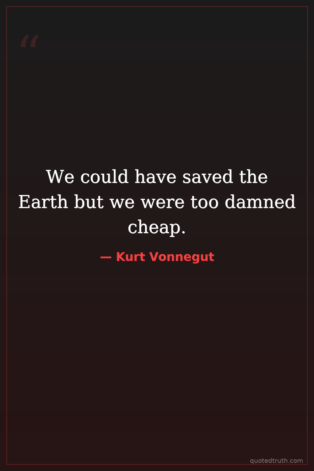 We could have saved the Earth but we were too damned cheap.