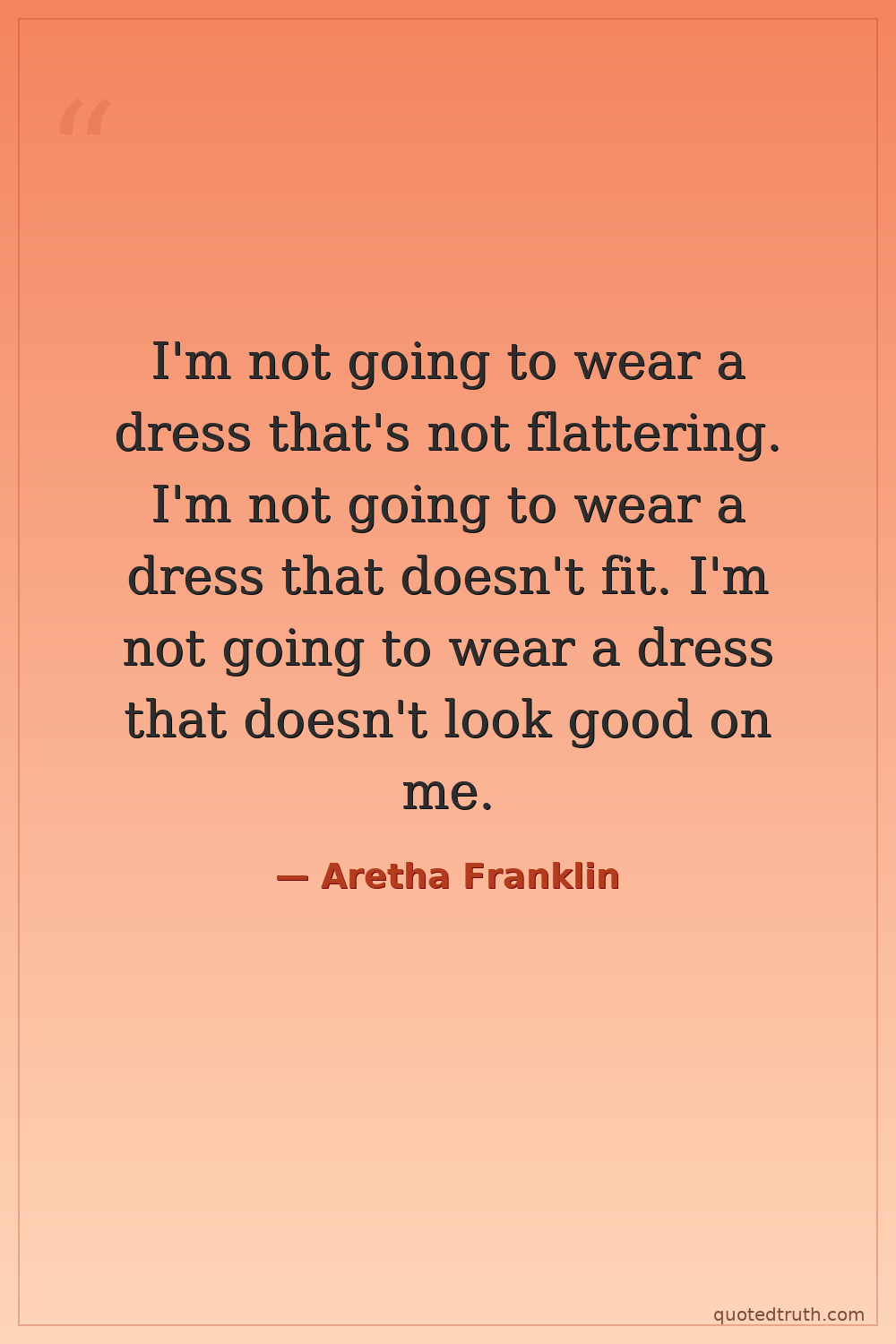 I'm not going to wear a dress that's not flattering. I'm not going to wear a dress that doesn't fit. I'm not going to wear a dress that doesn't look good on me.