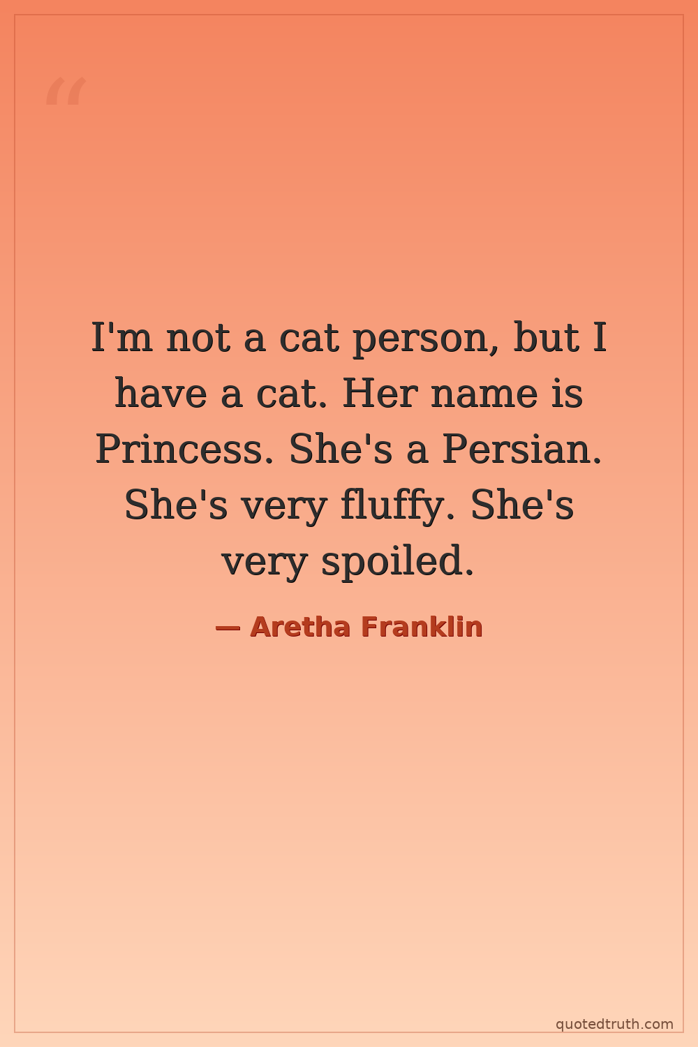 I'm not a cat person, but I have a cat. Her name is Princess. She's a Persian. She's very fluffy. She's very spoiled.