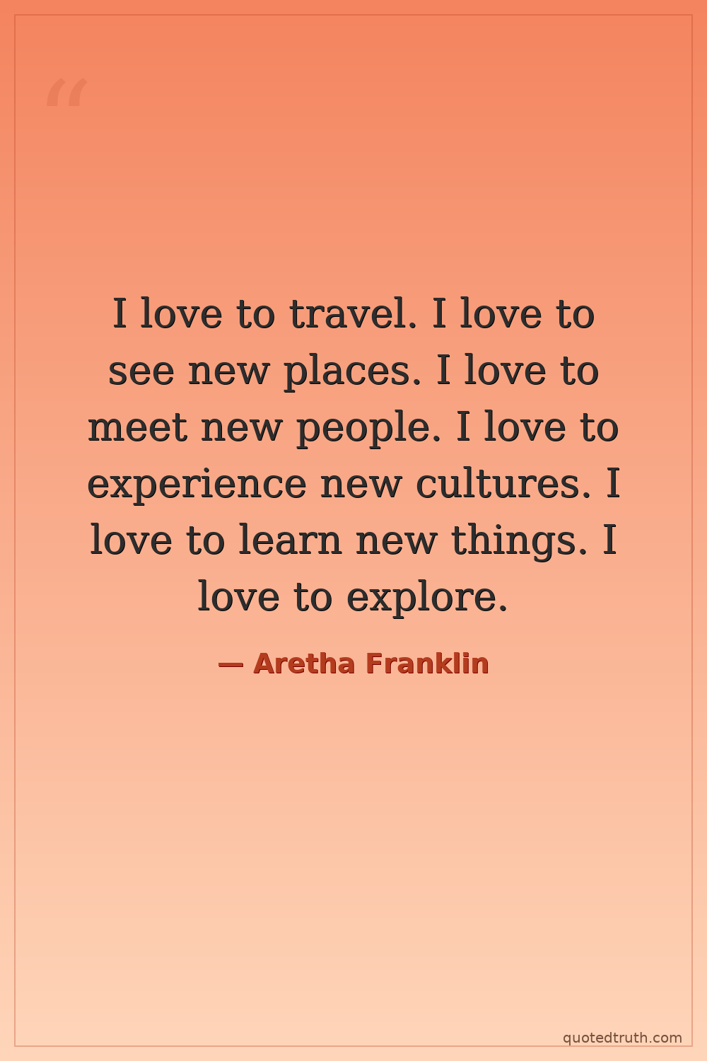 I love to travel. I love to see new places. I love to meet new people. I love to experience new cultures. I love to learn new things. I love to explore.