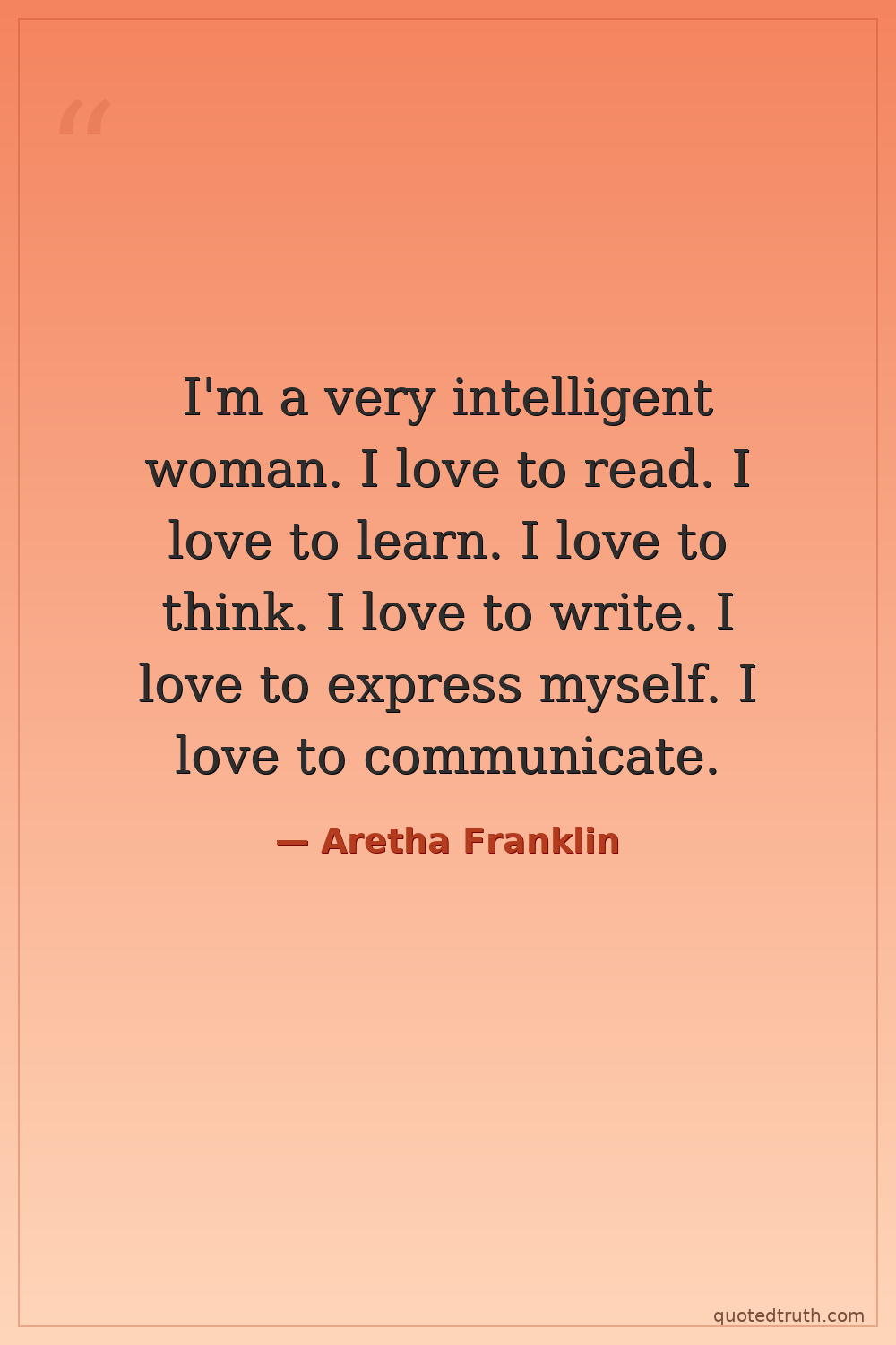 I'm a very intelligent woman. I love to read. I love to learn. I love to think. I love to write. I love to express myself. I love to communicate.