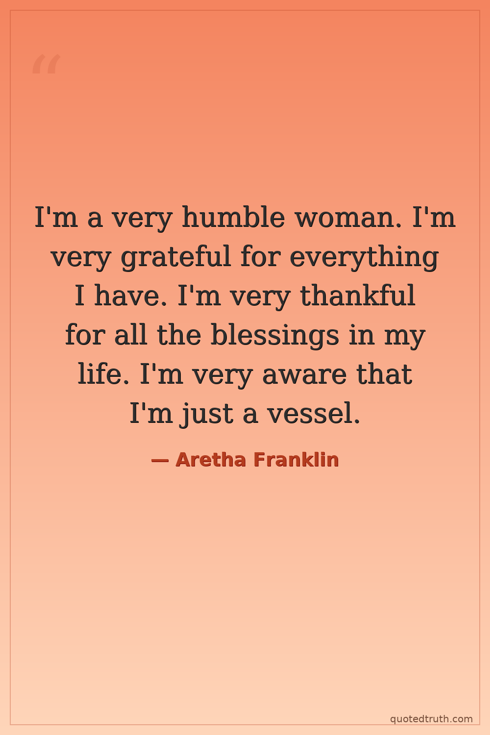 I'm a very humble woman. I'm very grateful for everything I have. I'm very thankful for all the blessings in my life. I'm very aware that I'm just a vessel.