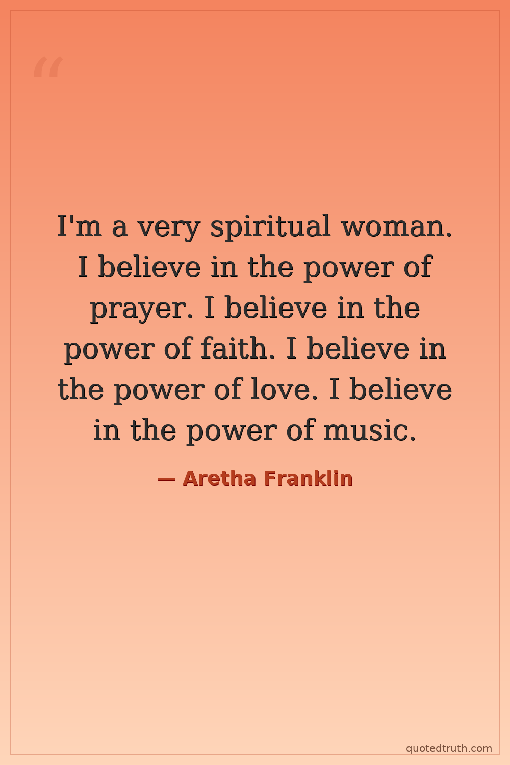 I'm a very spiritual woman. I believe in the power of prayer. I believe in the power of faith. I believe in the power of love. I believe in the power of music.