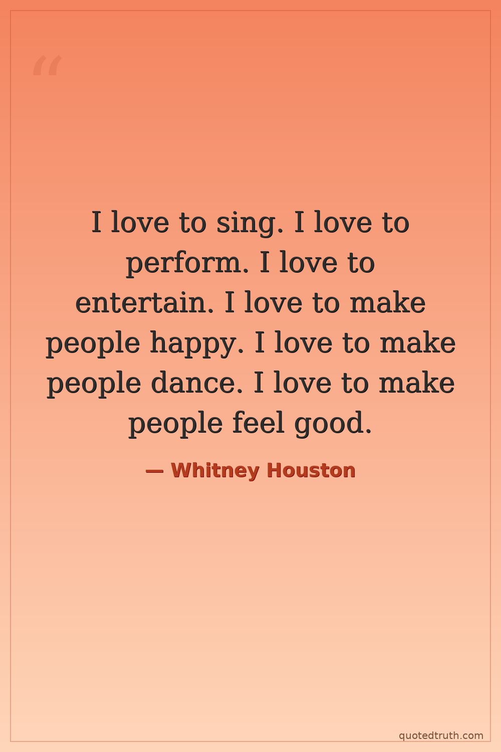 I love to sing. I love to perform. I love to entertain. I love to make people happy. I love to make people dance. I love to make people feel good.