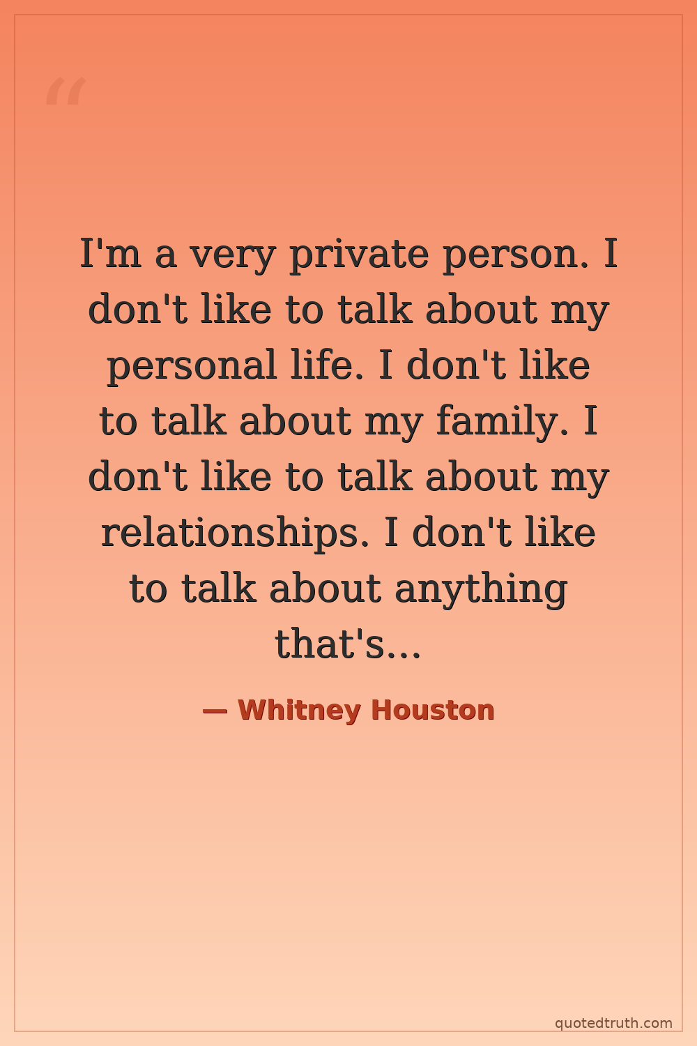 I'm a very private person. I don't like to talk about my personal life. I don't like to talk about my family. I don't like to talk about my relationships. I don't like to talk about anything that's not about my music.